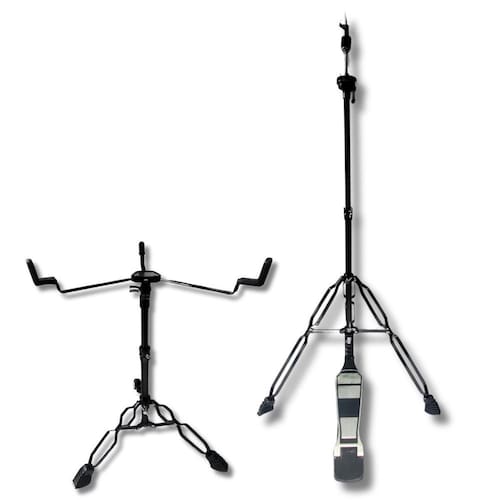 Kit Máquina de Chimbal Bateria Metal Preto com Presilha Vogga + Estante de Caixa de Bateria Metal Preto Vogga