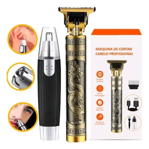 - Qualidade garantida ou seu dinheiro de volta - este anúncio contem: kit com 01 maquina dragão para cortar cabelo e barba + 01 maquina aparador de pelo de nariz e orelha Obs: primeira carga de aproximadamente 8 horas e nas demais, 3 horas. Duração de até 90 minutos em funcionamento. Aparador de cabelo e barba, máquina de cortar cabelo sem fio recarregável. Aparador externo equipado com 4 pentes para cumprir exigências diferentes do comprimento. Você pode facilmente ajustar o pente para a altura certa e cortar o penteado que você quer. Fácil de limpar a cabeça de corte, pode ser rapidamente enxaguada sob água corrente. Não coloque a máquina de cortar cabelo elétrica na água, só permita que a lâmina seja enxaguada. Potência forte e estável, cabeça afiada do cortador, capacidade de corte poderosa, não tem perigo de cortes na pele. Potência: 3w Tensão do motor: dc 5v Capacidade de carga: 1200ma Voltagem: bivolt Material: aço inoxidável. Método de carregamento: carregamento usb. Itens na embalagem: 1x máquina de cortar cabelo 1x cabo para carregar tipo c 1x escova de limpeza 1x óleo lubrificante 4x pentes 1 x maquina aparador de pelo de nariz e orelha Desenhos disponíveis: dragão do vendedor: 30 dias do vendedor: 1 meses Marca: Não Informado