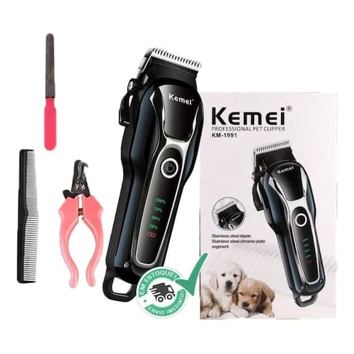 Maquina de tosa cachorro e gato Kit completo Kit Completo Máquina de Tosa Cães é Gatos 110 e 220V Ideal para os cuidados de cães e gatos . A máquina de tosa é super fácil de utilizar e limpar, proporcionando tempo e praticidade. Com seus acessórios auxiliares é possível pentear e raspar de modo simples e rápido . Motor Potente, serviço rápido . - Ergonômico, não cansa ou provoca lesões musculares - Simples de usar e limpar - Não oxida Lâmina Inox - Cortador com características ajustáveis Itens inclusos: Kit Completo 1 Máquina de Tosa Pet Bivolt Profissional Kemei Km-1991 1 Cortadores graduados de 3, 6, 10, 13 mm com 4 cabeças 1 Conjunto de cortadores de unha 1 Um pente cortado 1 Escova da lâmina 1 escova 1 garrafa de lubrificante para lubrificação 1 manual de uso 1 adaptador de carregador de bateria Garantia de 90 dias. Ean: 789456321456