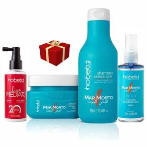O kit inclui o Shampoo Mar Morto 300ml, a Máscara Mar Morto 300g, o Finalizador Mar Morto 60ml e o Liso Imediato 110ml. Cada um desses produtos foi desenvolvido com oligoelementos similares aos presentes no Mar Morto, proporcionando uma limpeza intensa, recuperação e fortalecimento das cerdas capilares, além de brilho e volume controlados.