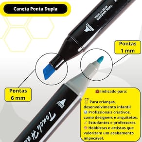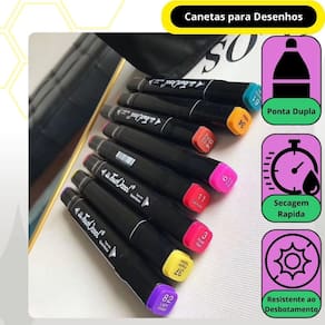 Conjunto de canetas marcador permanente - ponta dupla e 24 cores Conjunto de canetas marcador permanente ponta dupla - 24 cores Transforme sua criatividade com o conjunto de canetas marcador permanente ponta dupla ideal para artistas, designers e entusiastas de artesanato, este conjunto oferece: 24 cores vibrantes: explore uma ampla variedade de cores primárias e complementares com este conjunto de 24 canetas. As opções diversificadas permitem criar trabalhos artísticos impressionantes e adicionar detalhes únicos às suas criações. Pontas duplas versáteis: cada caneta possui duas pontas - uma fina e uma de pincel. A ponta fina é perfeita para detalhes precisos e linhas finas, enquanto a ponta de pincel é ideal para traços mais largos e sombreamento, garantindo flexibilidade máxima em suas obras. Organização prática: as tampas codificadas por cores facilitam a identificação rápida e a organização das canetas. Além disso, o design ergonômico proporciona conforto durante o uso prolongado, tornando sua experiência ainda mais agradável. Estojo de transporte incluso: acompanha um elegante estojo preto, ideal para armazenar e transportar suas canetas com segurança. Perfeito para artistas em movimento e para manter seu material sempre organizado. Tinta de alta qualidade: as canetas possuem tinta à base de água, inodora e não tóxica, garantindo uma aplicação suave, secagem rápida e resistência ao desbotamento. Ideal para uma ampla variedade de superfícies e projetos. Ideia de presente perfeita: este conjunto é um presente maravilhoso para artistas, estudantes, e qualquer pessoa apaixonada por artes. Excelente para ocasiões como natal, aniversários e outras celebrações especiais. Aplicações diversas: perfeito para desenhos, ilustrações, esboços e até mesmo para personalizar itens. As cores vivas e a tinta de alta qualidade são ideais para todos os tipos de projetos criativos. Descubra a liberdade criativa com o conjunto de canetas marcador permanente ponta dupla - 24 cores e leve suas obras de arte a um novo nível do vendedor: 7 dias Marca: Não Informado