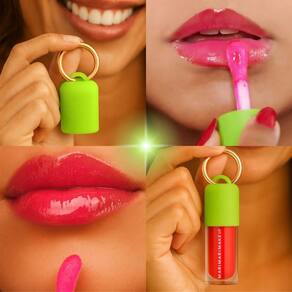 Lip Oil Juice: Aplique o Lip Oil Juice Melancia diretamente sobre os lábios, deslizando o aplicador para uma cobertura uniforme e um brilho instantâneo.