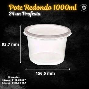 Pote Retangular Com Tampa Prafesta Pacote com 24 UnidadesVai ao microondas e freezer. Produto perfeito para utilização como marmita. Prático, rápido e higiênico!Livre de Bisfenol A - Produto não tóxico. (Especial para utilização com alimentos).Características gerais do produto:Modelo: Retangular com tampaMarca: PrafestaCor: TransparenteCapacidade: 1000mlMaterial: PP (polipropileno) 100% plástico virgemDimensões:Interno: 156,0 X 110,5 X 53,5mmExterno: 198,2 X 152,5 X 61,5mmConteúdo da embalagem: 24 Unidades de potes e 24 unidades de tampas para os potes