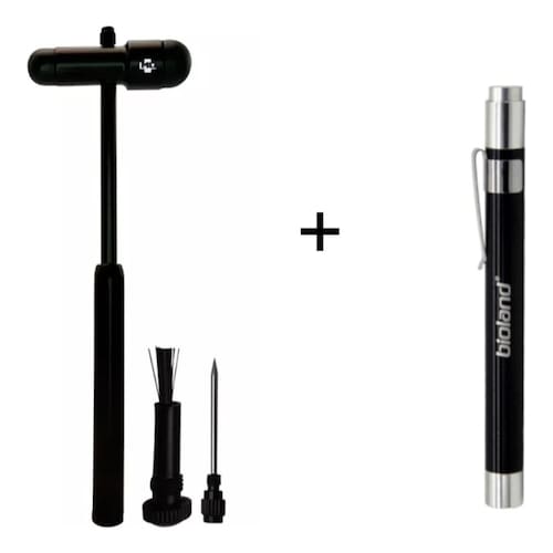 Martelo de Buck Neurológico MD Cor Black Edition Martelo para avaliação; - Examinador de reflexos; - 18cm. Validade indeterminada. Garantia contra defeitos de fabricação. - Confeccionado em aço inoxidável AISI 420; - Borracha preta; - Contém uma agulha e um pincel com cerdas em nylon; - Peso: 10g; - Tamanho: 18 x 5,5 cm. Lanterna LED LT200 Bioland A lanterna clínica Bioland garante alta visibilidade para exames médicos. Lâmpada de LED; Corpo de plástico; Acionamento no prendedor (Liga / Desliga Não precisa ficar Pressionando) Resistente e de alta durabilidade; Baixo consumo de energia; Alta iluminação; Leve e prática; Alimentação: 2X AAA pilhas Incluso Clipe de bolso; Garantia de 6 meses contra defeito de fabricação