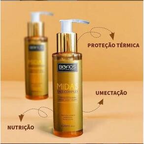 Midas oils complex é um óleo finalizador que tem função hidratante, podendo ser utilizado também para umectação. Ele também possui proteção térmica e solar.
