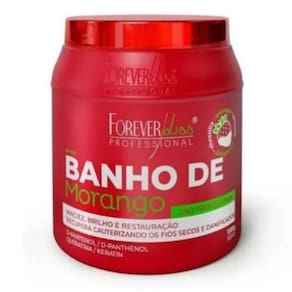 A Máscara Banho de Verniz Morango 1kg hidrata profundamente os cabelos