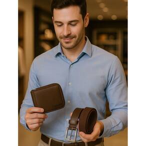 Kit Fasolo Masculino Carteira e Cinto Couro Carteira: - Confeccionada em Couro; - Possui seis divisões para cartão; - Possui seis plásticos transparentes para documentos; - Possui uma repartições para notas e divisões extras; - Possui bolso com zíper externo para moedas. ; - Dimensões: 9 x 12 x 2 cm alt x larg x prof ; Cinto: -esportivo elastico Fasolo -possui um passante -fivela em acabamento grafite escovado -ponteiras em couro -padrão de qualidade superior -feitos com tecnologia, maquinário de última geração e acabamento manual -fabricados com couro certificado de alta qualidade adquiridos dos melhores produtores Com mais de 100 anos de tradição, a Fasolo é a marca mais tradicional de acessórios em couro do Brasil. Imagens meramente ilustrativas Marca: Não Informado