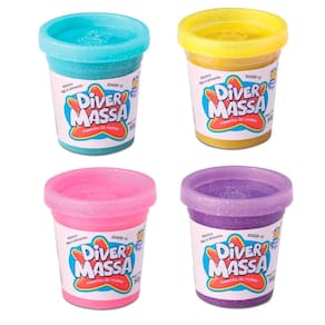 Com quatro potes de 50g cada, totalizando incríveis 200g de massa com glitter, o Kit Massa de Modelar Infantil Divertoys é mais do que apenas um conjunto de massinhas - é um portal para um mundo de infinitas possibilidades criativas! Com as cores vibrantes de amarelo, rosa, roxo e azul, os pequenos poderão soltar a imaginação e criar de castelos de contos de fadas a criaturas alienígenas intergalácticas e muito mais.Além da diversão, a massa de modelar infantil também auxilia no desenvolvimento da coordenação motora fina, criatividade e muito mais! Adquira hoje mesmo o Kit Massa de Modelar Infantil Divertoys e assista suas crianças explorarem um mundo de magia, criatividade e diversão.