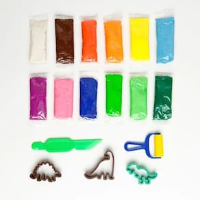 -Composto por 12 cores vibrantes de massa de modelar e 5 moldes temáticos de dinossauros, este kit proporciona horas de diversão e criatividade.