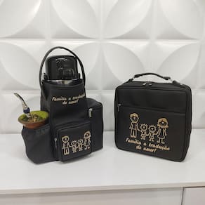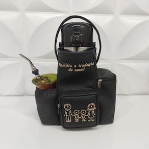 Kit Mateira e Porta Pratos Personalizado Família Feliz - Coutre Bolsas - Kit Chimarrita e Bolsa Porta Pratos Personalizado Família Feliz Preto - Coutre Bolsas