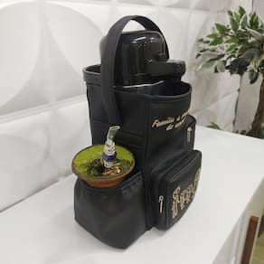 A nossa Bolsa Mateira possui compartimento para térmica com redução de tamanho nas costas (desse modo pode acomodar tanto a térmica grande quanto o modelo menor), possui um bolso para o pacote de erva mate, um bolso para a cuia e um bolso de zíper para levar objetos que desejar. Possui uma alça de mão para facilitar o transporte. Trabalhamos com material sintético de alta qualidade e durabilidade. Não hidrolisa (não descasca). Metais Niquelados.