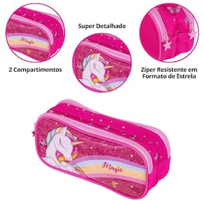 Kit Escolar 5 Itens | Mochila Costas/Rodinhas | Estojo | Lancheira | Garrafa | Avental | Magic |Unicórnio