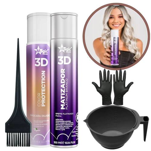 *Este produto não é um protetor solar. CONTÉM: 1X MATIZADOR 3D Platinium Branco 300ml MAGIC COLOR 1 X Mascara Diluidora Magic Color 300ml 1 x Cumbuca para Mistura 1 x Pincel de Mistura 1 x Par de Luvas