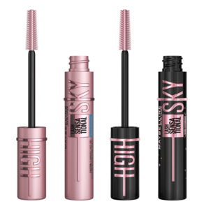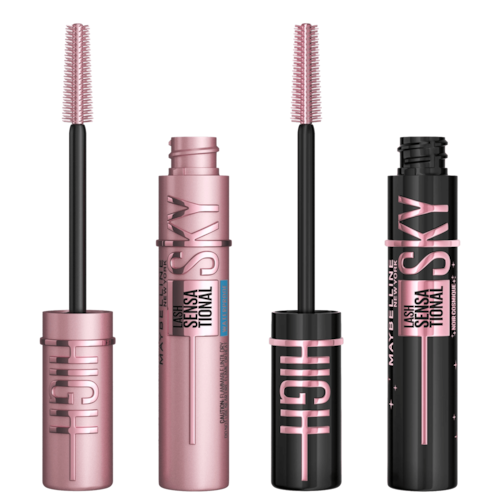Kit com máscaras de cílios, lavável e à prova d'água. Maybelline Sky High À Prova D'água + Sky High Cosmic Black versões com alta pigmentação e durabilidade, para alongamento e volume.