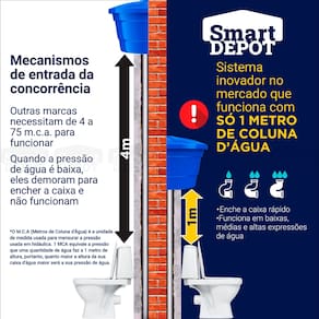 Diferente de outros kits de mecanismos do mercado que necessitam de 4 a 75 m.c.a para funcionar e quando instaladas em baixa pressão de água demoram a encher ou não funcionam, com sistema inovador, o nosso kit funcionam com baixas, médias e altas expressões de água, com apenas 1 m.c.a, enchem a caixa muito mais rápido.
