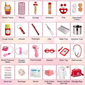 - Conjunto médico infantil de 34 peças: equipe seu filho com ferramentas médicas essenciais, incluindo um estetoscópio que pode produzir batimentos cardíacos reais, manguito de pressão arterial, termômetro, frasco de oxigênio, seringa, bandagens e outros itens essenciais para diagnóstico e tratamento de primeiros socorros. Também inclui uma fantasia de médico e uma sacola conveniente para fácil armazenamento e portabilidade, e é montada em uma linda caixa de embalagem de presente, adequada para presentear