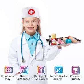 - Kit educacional para médicos infantis: uma maneira divertida de jovens aspirantes a médicos aprenderem sobre o corpo humano por meio de dramatizações entre médicos e pacientes. Alivie os medos das crianças associados a uma visita ao médico e ensine-lhes práticas de saúde. Ajuda a desenvolver a expressão criativa, habilidades sociais e confiança ao fingir brincar com a família e amigos.
