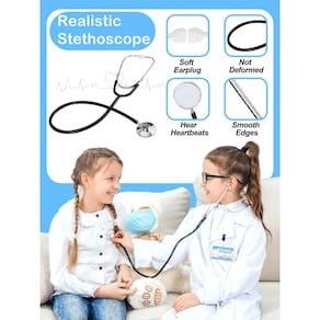 Acessórios médicos interativos: a inclusão de um cartão de identificação que pode ser personalizado torna a experiência de interpretação de papéis do médico ainda mais envolvente e realista para crianças. Materiais de alta qualidade: a fantasia de médico infantil é feita de tecido macio e durável, projetada para suportar os rigores de brincadeiras ativas e uso frequente. Brincadeira educativa de enfermeira: incentiva o interesse em ciência e medicina, ajudando as crianças a desenvolver empatia e uma compreensão da importância de cuidar dos outros. Desenvolve habilidades sociais: brincar de médico pode ajudar as crianças a melhorar suas habilidades sociais e de comunicação enquanto interagem com outras pessoas em cenários de dramatização de carreira. Presente de aniversário para crianças: recomendado para crianças de 3 a 6 anos, este conjunto de presentes médicos é um brinquedo maravilhoso para aniversários, feriados ou qualquer ocasião especial. Uso versátil: adequado para festas de casaco de carreira, eventos escolares ou apenas brincadeiras imaginativas diárias em casa ou com amigos, aprimorando seu uso em vários ambientes. Inspira carreiras futuras: ajuda as crianças a promover um interesse precoce por profissões médicas, potencialmente inspirando futuros profissionais de saúde. Aumenta a confiança: ao interpretar papéis como médicos, as crianças podem ganhar confiança em suas habilidades para ajudar e tratar os outros, aumentando sua autoestima e habilidades de tomada de decisão. - ?Fantasia de médico realista?Ilumine a imaginação do seu filho com este conjunto de fantasia de médico, completo com um jaleco médico branco durável, um estetoscópio funcional e um cartão de identificação oficial. Ótimo para inspirar futuros profissionais médicos durante suas brincadeiras imaginativas - ?Acessórios médicos interativos?O conjunto de brinquedos infantis para médicos apresenta um estetoscópio infantil real que permite que as crianças ouçam seus próprios batimentos cardíacos, adicionando emoção às suas brincadeiras. O cartão de identificação incluído pode ser personalizado, tornando sua carreira ainda mais envolvente e realista. - ?Materiais duráveis?Feito de tecidos de alta qualidade, nossa roupa médica branca é projetada para suportar os rigores da brincadeira ativa. O material é macio ao toque, mas durável o suficiente para uso diário, tornando-o ideal para brincadeiras e eventos à fantasia. - ?Brincadeira educativa?Estimule o interesse do seu filho pela medicina com os brinquedos médicos Popsunny Brincar pode ajudar as crianças a desenvolver empatia e aprender a importância de ajudar os outros, enquanto se divertem diagnosticando e tratando seus "pacientes" - ?Presente para crianças?O conjunto de brincadeiras de enfermeira é recomendado para meninos e meninas 3t 4t 5t 6t, nossas ferramentas médicas são uma ótima escolha para aniversários, feriados, festas à fantasia, eventos escolares ou apenas para brincar todos os dias em casa ou com amigos