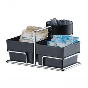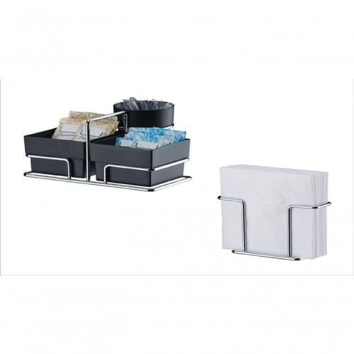 1 und Organizador para Sachês de Açúcar/Adoçante e Mexedor: Profundidade: 14cm / Largura: 15cm / Altura: 7,5cm / Peso: 0,176 kg. Com alça para facilitar o transporte ao servir seus convidados. O conjunto para chá e café é prático e funcional, ideal para levar à mesa ou deixar na bancada do café. Os recipientes plásticos são ideais para armazenar saquinhos de chá, sachês de açúcar e adoçante e os mexedores. Além do tradicional tratamento superficial da Future - onde são aplicadas até 4 camadas de metal - os produtos são revestidos com uma camada extra do protetivo especial Rust Free, garantindo cores vivas e brilhantes, além de maior resistência contra ferrugem. MODELO 1156PT