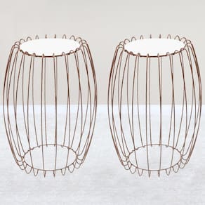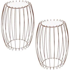 Kit Mesa Apoio Lateral 43 cm Tampo Vidro Branco Base Metal Cobre Nacc