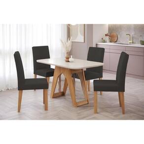 Conjunto: Mesa Sala Jantar Carol C/ Tampo Madeirado C/ Vidro 130cm + 4 Cadeiras Maia Nature/off White/chumbo - Cimol