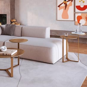Kit Mesa Centro E Lateral Chanfrada Pes Metal Dourado Hanover Artesano Hanover Dourado
