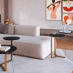 Kit Mesa Centro E Lateral Chanfrada Pes Metal Dourado Nero Artesano Nero Dourado