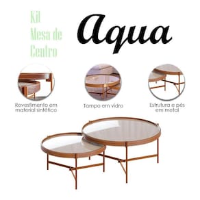 Kit Mesa de Centro Aqua com Vidro Off White Cobre - Imcal