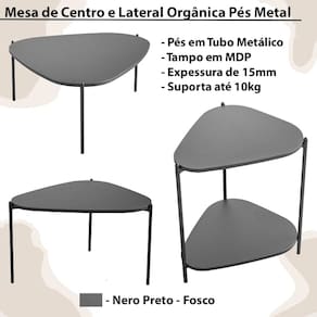 Kit Mesa de Centro e Lateral Organica Pes Metal Preto Nero Artesano