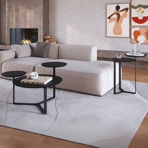 Os pés metálicos, que remetem ao estilo industrial, trazem robustez à estética, enquanto os tampos redondos, com sua fluidez orgânica, adicionam um toque de suavidade ao ambiente. Essa harmonização entre a madeira do tampo e o metal dos pés cria uma sinergia encantadora, tornando cada mesa uma peça única que se destaca em qualquer espaço. Perfeitas para otimizar o seu conforto e servir como peça-chave na decoração, tanto a mesa de centro quanto a mesa de apoio são versáteis e se adaptam a diferentes estilos, seja em um encontro descontraído ou em um momento de leitura.