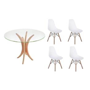 Kit Mesa de Jantar 90cm Tampo de Vidro 4 Cadeiras Charles Eames Branca