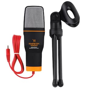 MICROFONE DE MESA CONDENSADOR COM TRIPÉ E CABO P2 1,8M - MXT Sempretemvendas Portátil, simplesmente plug in and play, sem driver, funciona com qualquer software, clareza superior com a simplicidade de uma única conexão plug & play. Microfone Condensador de alta sensibiidade, baixo ruído, omnidirecional, ampla faixa dinâmica. Acompanha tripé de mesa dobrável, pode ajustar livremente a altura e o ângulo do microfone, flexível e fácil de operar. Adequado para gravação de áudio, videoconferência em rede (ensino por internet), chat de jogos online em rede, uso em karaokê. A resposta de frequência estendida e suave é excelente para bater papo. Compatível com PC, Notebook, Smartphons, Tablets e dispositivos com entrada de áudio em P2 Estéreo.