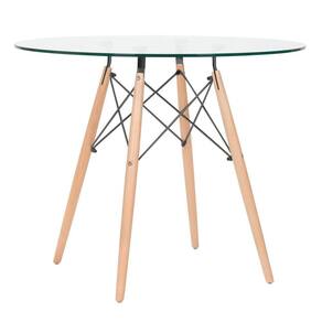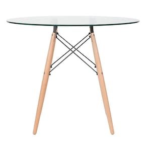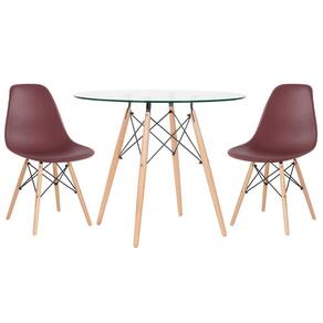 Cadeira modelo Eames DSW: Material do assento: Polipropileno - Material da base: Madeira e aço - Altura do assento: 43 cm - Largura do assento: 46 cm - Profundidade do assento: 40 cm - Distância entre os pés: 40 cm - Peso suportado: 130 kg. Mesa redonda Eames: Material do tampo: Vidro incolor temperado 8 mm - Material da base: Madeira natural e aço - Diâmetro do tampo: 80 cm - Altura: 75 cm - Garantia: 3 meses.
