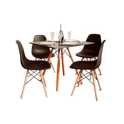 Kit mesa eiffel preta quadrada 80cm + 04 cadeiras eiffel O conjunto de mesa eiffel com as cadeiras eiffel irá deixar seu lar com uma decoração moderna, além de proporcionar conforto. Confeccionado com materiais de qualidade, esse kit é muito versátil, podendo compor perfeitamente ambientes como sala de jantar, cozinha ou um espaço gourmet. Ideal para refeições ou reunir familiares e amigos.