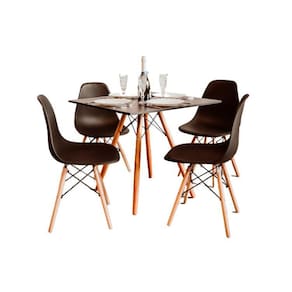 Kit Mesa Eiffel Preta Quadrada 80Cm + 04 Cadeiras Eiffel - Preto