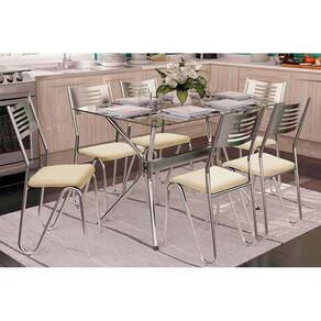 Sala de Jantar Completa Loire c/ Tampo Vidro 120cm + 6 Cadeiras Nápoles Cromado/Courano Nude - Kappesberg Abaixo segue os produtos do KIT: Sala de Jantar Completa Loire c/ Tampo Vidro 120cm + 6 Cadeiras Nápoles Cromado/Courano Nude - Kappesberg Tampo Mesa Sala de Jantar Vidro TAV1261 120x80cm Incolor - Kappesberg