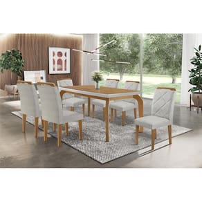 Sala de Jantar Completa Londrina Tampo Madeirado c/ Vidro 180cm + 6 Cadeiras Melissa Imbuia/Bege Turim - Rufato