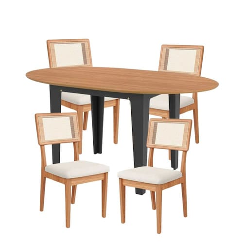 Renove sua sala de jantar com o Kit Mesa Extensível e Quatro Cadeiras, perfeito para quem busca funcionalidade e estilo. A mesa, fabricada em MDF de alta qualidade com acabamento UV nas cores Freijó e Preto Fosco, oferece um tampo extensível que vai de 122 cm a 159 cm, ideal para acomodar mais convidados com praticidade. Com cantos arredondados e estrutura robusta, suporta até 40 kg, unindo segurança e design moderno. As cadeiras, também em MDF, apresentam assento em espuma D28 e encosto em tela de palha sintética, proporcionando conforto e sofisticação. O revestimento em tecido Césare Claro (95% algodão e 5% poliéster) e a capacidade de suporte de até 120 kg por cadeira garantem durabilidade e charme. Este conjunto é a escolha ideal para ambientes acolhedores e modernos, com a flexibilidade e elegância que você precisa para desfrutar de momentos especiais em família ou com amigos.
