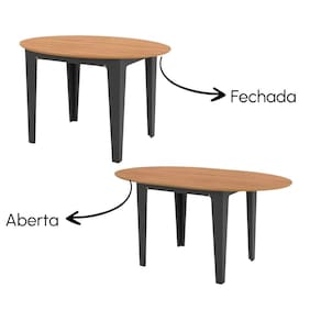 CARACTERÍSTICAS TÉCNICAS DA MESA: - Produzido em MDF de 18 e 25 mm - Acabamento em Pintura UV na cor Freijó e Preto Fosco - Detalhes no Tampo com Cantos Arredondados - Tampo Extensível - Suporta até 40 Kg no Tampo