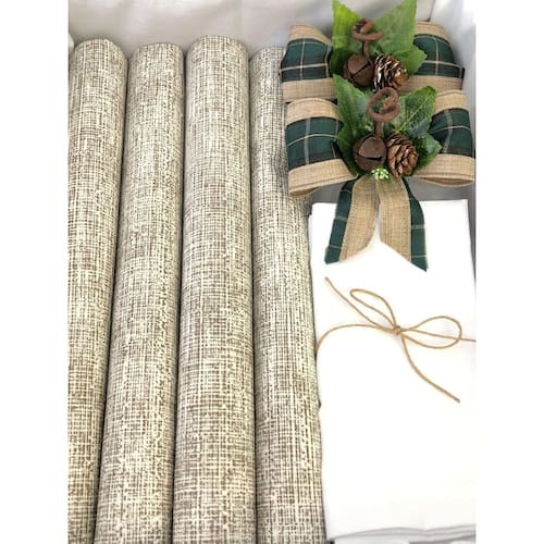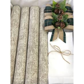 Kit Mesa Posta Jogo Americano Completo Decor Natal 12 Lugare Modelos: Jogo Americano Off + Guardanapo Branco Liso + Porta Guardanapo Rústico Verde Kit Mesa Posta