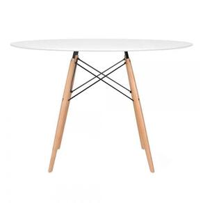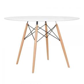 CADEIRAS: Material do assento: Polipropileno - Material da base: Madeira e aço - Altura do encosto: 81 cm - Altura do assento: 43 cm - Largura do assento: 46 cm - Profundidade do assento: 40 cm - Distância entre os pés: 40 cm - Peso suportado: 130 kg. MESA: Material do tampo: MDF laqueado (Laca fosca) - Material da base: Madeira e aço - Altura: 75 cm - Diâmetro: 120 cm.