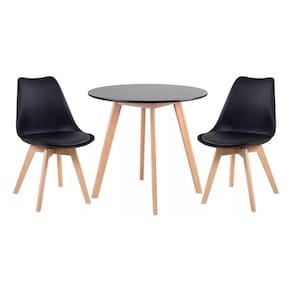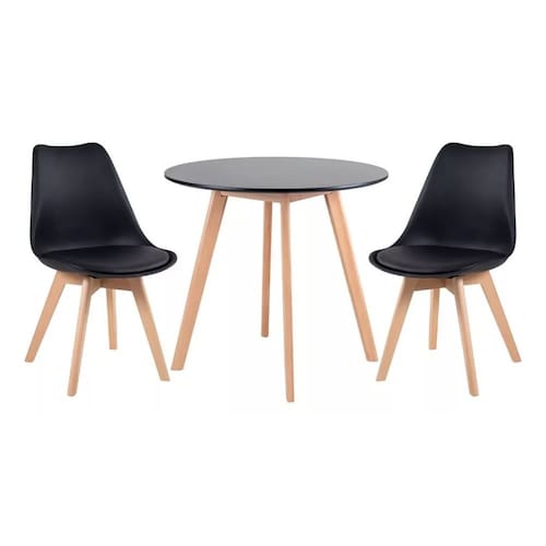 Kit Mesa Redonda Leda Eames 90 Cm Preto + 2 Cadeiras Eiffel Leda