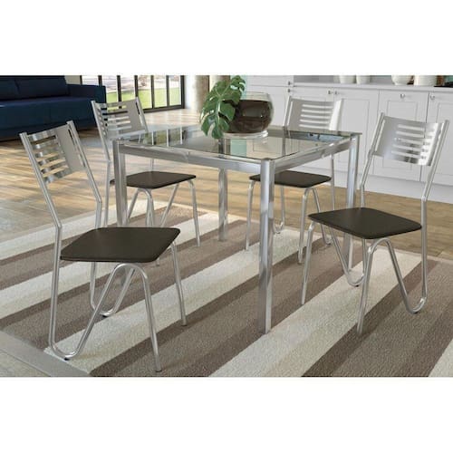 Sala de Jantar Completa Reno c/ Tampo Vidro 90cm + 4 Cadeiras Nápoles Cromado/Courano Marrom - Kappesberg Abaixo segue os produtos do KIT: Sala de Jantar Completa Reno c/ Tampo Vidro 90cm + 4 Cadeiras Nápoles Cromado/Courano Marrom - Kappesberg Tampo Mesa Sala de Jantar Vidro TAV9061 Vidro 90x90cm Incolor - Kappesberg