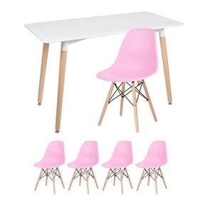 Cadeira modelo Eames DSW: Material do assento: Polipropileno - Material da base: Madeira e aço - Altura do encosto: 81 cm - Altura do assento: 43 cm - Largura do assento: 46 cm - Profundidade do assento: 40 cm - Distância entre os pés: 40 cm - Peso suportado: 130 kg. Mesa de jantar retangular: Material do tampo: MDF laqueado (Laca fosca) - Material dos pés: Madeira natural - Altura: 75 cm - Largura do tampo: 120 cm - Comprimento do tampo: 60 cm - : 3 meses.