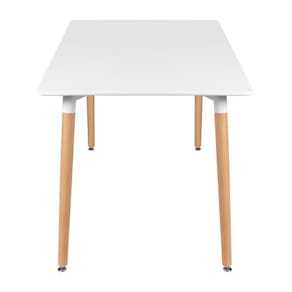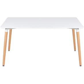 Cadeira modelo Eames DSW: Material do assento: Polipropileno - Material da base: Madeira e aço - Altura do encosto: 81 cm - Altura do assento: 43 cm - Largura do assento: 46 cm - Profundidade do assento: 40 cm - Distância entre os pés: 40 cm - Peso suportado: 130 kg. Mesa de jantar retangular: Material do tampo: MDF laqueado (Laca fosca) - Material dos pés: Madeira natural - Altura: 75 cm - Largura do tampo: 140 cm - Comprimento do tampo: 80 cm - : 3 meses.