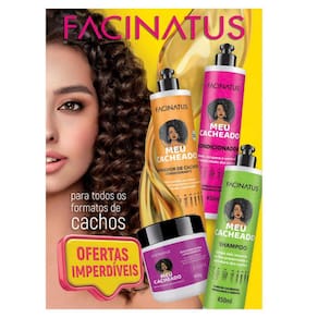 Definição e nutrição para cabelos cacheados. Hidratação intensa e duradoura. Maciez, brilho e maleabilidade aos fios. Controle do frizz e redução do volume. Proteção contra danos externos e agressões ambientais. Cachos mais saudáveis, bonitos e definidos. Experimente o Kit Meu Cacheado: Definição e Nutrição Facinatus e descubra o poder de transformação que ele pode proporcionar aos seus cabelos cacheados. Realce sua beleza natural e conquiste cachos definidos e radiantes