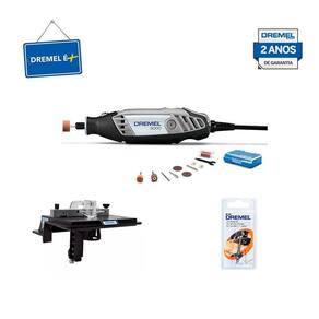 Kit micro Retifica Dremel 3000 220V + Suporte Tupia de Mesa 231 + Fresa 618 para Chanfrar 1/2 Com este Kit Transforme a Micro Retifica em uma Perfeita Tupia de Bancada/Mesa , otima para trabalhos e Artesanatos em Madeira Micro Retifica Dremel 3000 220v: Equipado com ventilador mais eficiente para manter a ferramenta funcionando com frescor sob as duras aplicações e aderência em qualquer posição Possui isolamento de caixa de ar entre o motor e a caixa de transferência de calor, para eliminação direita à mão Desenho de aprimorado para ajuste maios fácil de velocidade Uma zona de aderência de 360 com grip macio e ergonomia superior para conforto e controle Escovas substituíveis para uma vida mais longa Velocidade variável 5.000 - 33.000 rpm: Nenhuma outra ferramenta rotativa é tão rápida Motor universal com rolamento de : Evita o superaquecimento, mesmo sob carga Tensão: 220V Indicado para: Hobbysta Artesão Usuário doméstico Podólogo Protético Mesa de Fresar para Micro Retifica Dremel 231 - 2615023132: A Mesa para fresar 2615023132 da Dremel torna a sua micro retífica numa fresadora de bancada, perfeita para trabalhos em madeira, sulcos e acabamentos de bordas em suas peças; Fixo em uma bancada, esse acoplamento oferece praticidade e conforto, permitindo que você leve o material até a ferramenta e possa movimentá-lo livremente para dar forma sem dificuldades; Possui ajuste de profundidade e uma mesa de trabalho de 203 x 152mm 8 x 6 ; Compatível com: Dremel 3000, 4000 e 8220; Fresa Para Chanfrar com Guia 12,7MM Dremel 618 - 2615000618: Fresa Para Chanfrar 1/2 Dremel 618 - 2615000618 Para fazer contornos, incrustações e encaixes em madeira e outros materiais macios. Feitas de aço para alta velocidade. Itens Inclusos no Kit: 01 - Micro Retifica Dremel 3000 220V; 02 - Discos de corte; 01 - Chave; 02 - Discos de feltro; 01 - Pasta para polimento; 01 - Tubo de lixa com suporte; 01 - Broca 3,2 mm; 02 - Hastes adaptadora; 01 - Mesa de Fresar para Micro Retifica Dremel 231 - 2615023132; 01 - Fresa Para Chanfrar com Guia 12,7MM Dremel 618 - 2615000618. Imagem Meramente Ilustrativa Marca: Não Informado