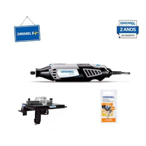 Kit Micro Retifica Dremel 4000 220V + Tupia de Mesa 231 + Fresa 650 para Chanfrar 1/8 Com este Kit Transforme a Micro Retifica em uma Perfeita Tupia de Bancada/Mesa , otima para trabalhos e Artesanatos em Madeira Micro Retifica Dremel 4000 220v: Ferramenta Multifuncional Rotativa Para Trabalhar Com Máxima Precisão e Praticidade; Ideal Para Lixar, Cortar, Limpar, Polir, Esculpir, Gravar, Esmerilhar, Afiar, Fresar E Furar; Gravar e Mais. Diversas Aplicações em Uma Só Máquina Para Você, Artesão ou Instalador, Ter de Um Resultado Impecável; Pode Ser Aplicada em Materiais Como Vidro, Madeira, Metal, Plástico, Fibra de Vidro, Cerâmica, Alvenaria, Drywall, Azulejo, Papelão e Eva; Verdadeiro Coringa Para Quaisquer Imprevistos nos Trabalhos; Botão Trava/Destrava Para Troca Rápida de Acessórios; Botão Liga/Desliga Independente do Botão de Controle de Velocidade; Corpo Emborrachado Ergonômico Para Maior Conforto e Controle Nas Operações; de Velocidade Variável Para Maior Versatilidade, Com Controle Total Para Máxima Precisão; Constante Eletrônico no Motor, Mantém o Torque em Baixa Velocidade; Motor de Alto Desempenho Para Máxima Performance a Todas as Velocidades. Especificações Técnicas Potência: 175W Voltagem: 220V Rotação RPM: 5.000 - 35.000 / min Torque Constante do Motor Velocidade Variável Sistema de Mudança de Acessórios EZ Twist tm - Para Troca Rápida Dimensões CxLxA : 284 x 231 x 243mm Peso: 2,5Kg Dimensões: 260 x 390 x 99mm Mesa de Fresar para Micro Retifica Dremel 231 - 2615023132: Especificações: A Mesa para fresar 2615023132 da Dremel torna a sua micro retífica numa fresadora de bancada, perfeita para trabalhos em madeira, sulcos e acabamentos de bordas em suas peças; Fixo em uma bancada, esse acoplamento oferece praticidade e conforto, permitindo que você leve o material até a ferramenta e possa movimentá-lo livremente para dar forma sem dificuldades; Possui ajuste de profundidade e uma mesa de trabalho de 203 x 152mm 8 x 6 ; Compatível com: Dremel 3000, 4000 e 8220; Fresa Paralela Cilindrica Reta 3,2mm Dremel 650 2615000650: Para fresar contornos, roteamentos, incrustações ou encaixes em madeira e outros materiais maciços. Para fresa reta. Diametro : 3,2mm 1/8 Haste 1/8 Compatível com Dremel 3000, 4000, 8220 e Stylo+. E outras micros Retificas com pinças de 1/8 Itens Inclusos no Kit: 01 - Micro Retifica Dremel 4000 220v; 01 - Mesa de Fresar para Micro Retifica Dremel 231 - 2615023132; 01 - Fresa Paralela Cilindrica Reta 3,2mm Dremel 650 2615000650. Imagem Meramente Ilustrativa