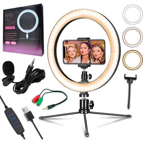 Agora seus vídeos e fotos vão ficar profissionais com este incrível ring light 26cm,acompanhado do mini tripé e suporte para celular,ele vai pronto para uso e fácil utilização.Com 3 tipos de cores sua iluminação estará completa.