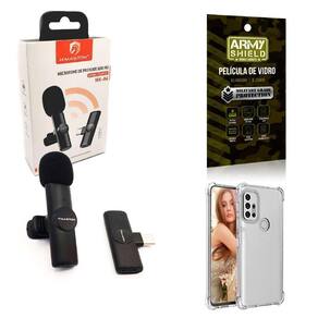 Kit Microfone Sem Fio + Capinha Motorola G10 E Película 3D